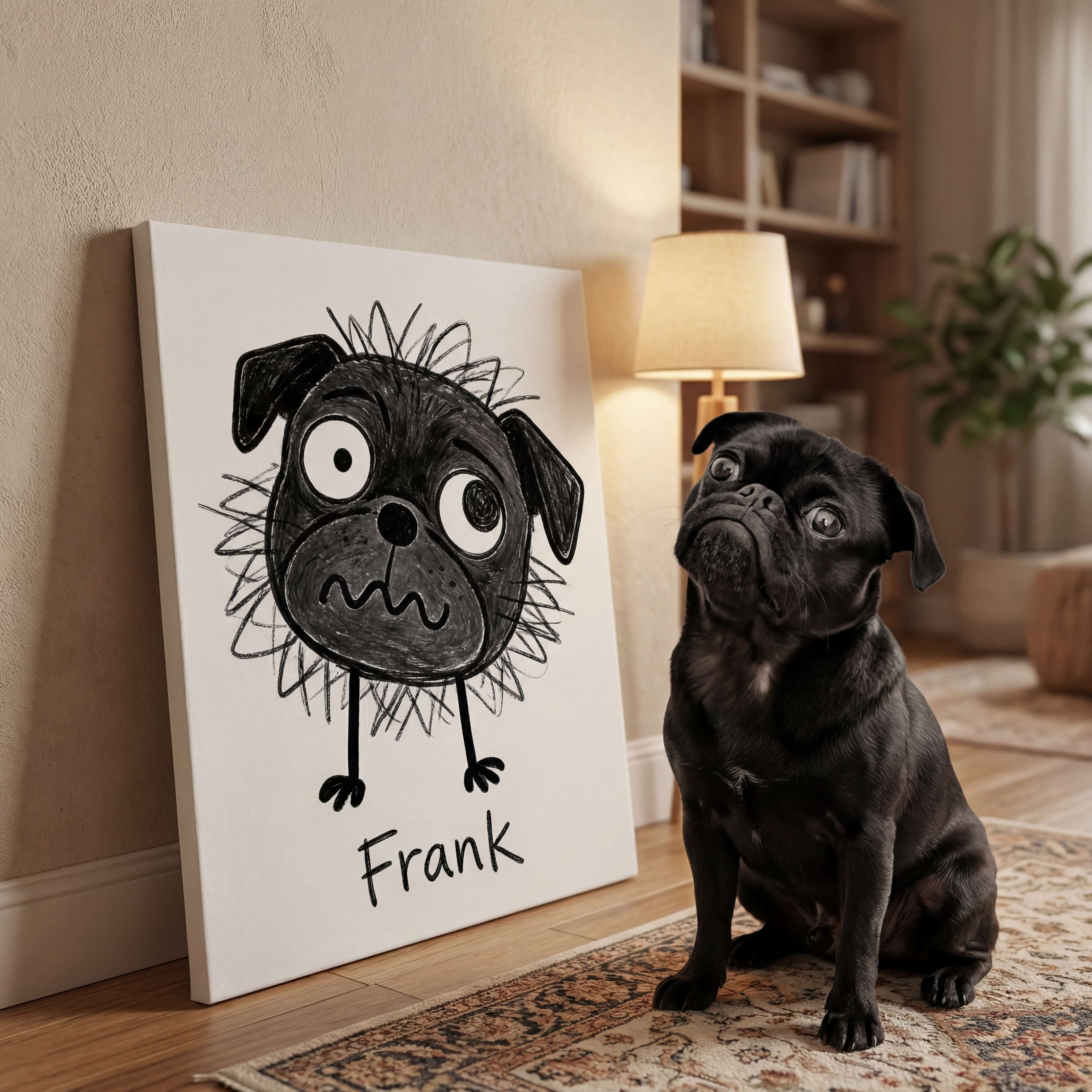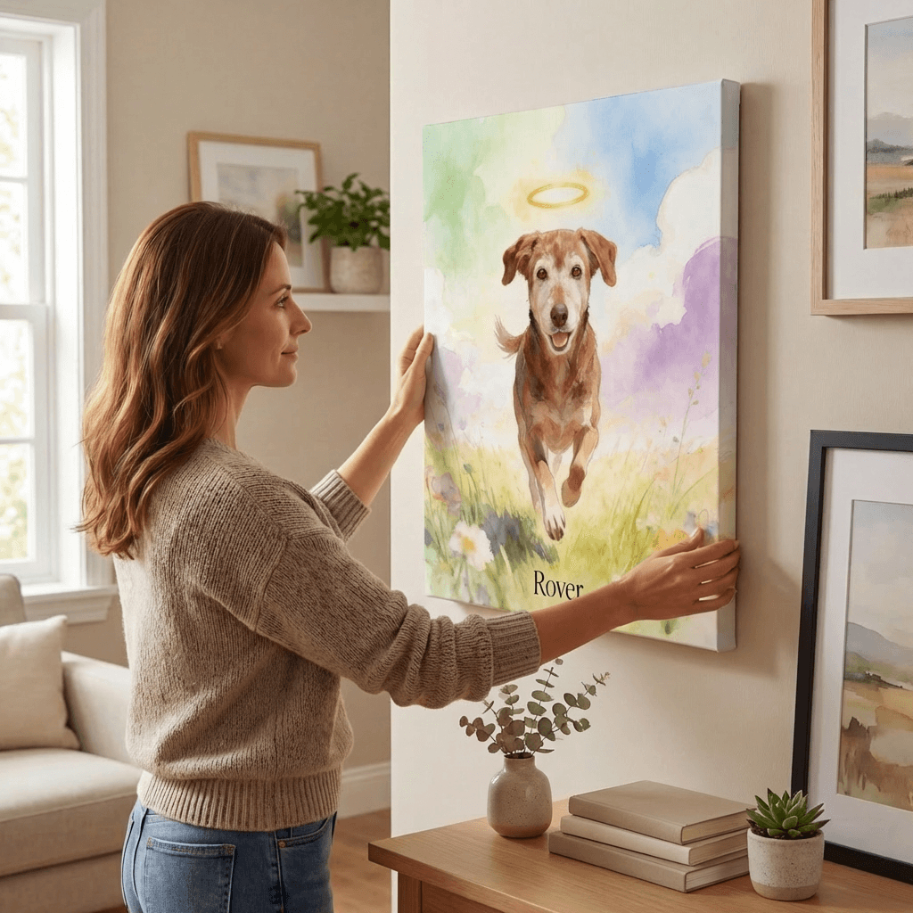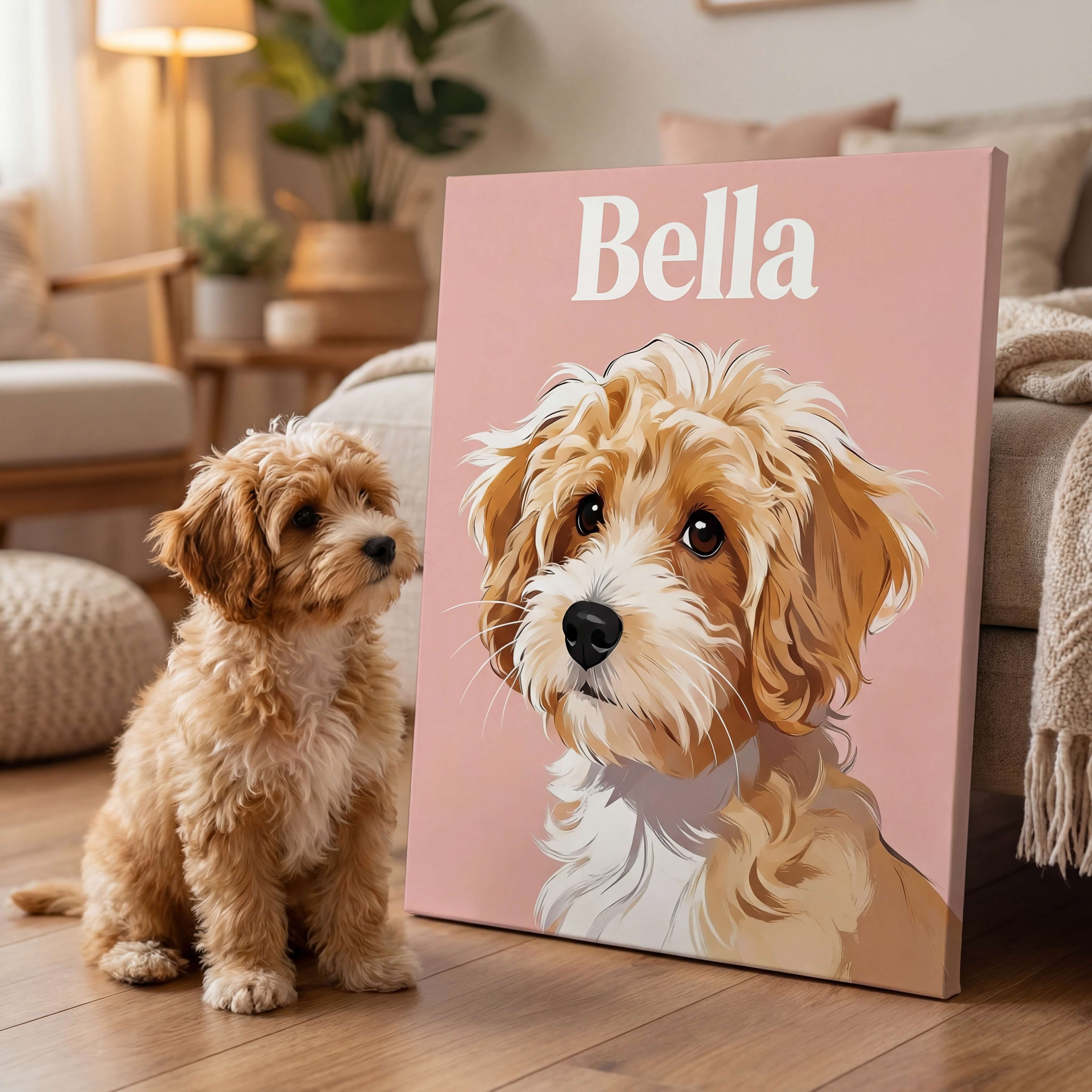 Choose a size and style, then upload a photo of your dog or cat (or any pet). Any pet, any breed—we work from your best shot.