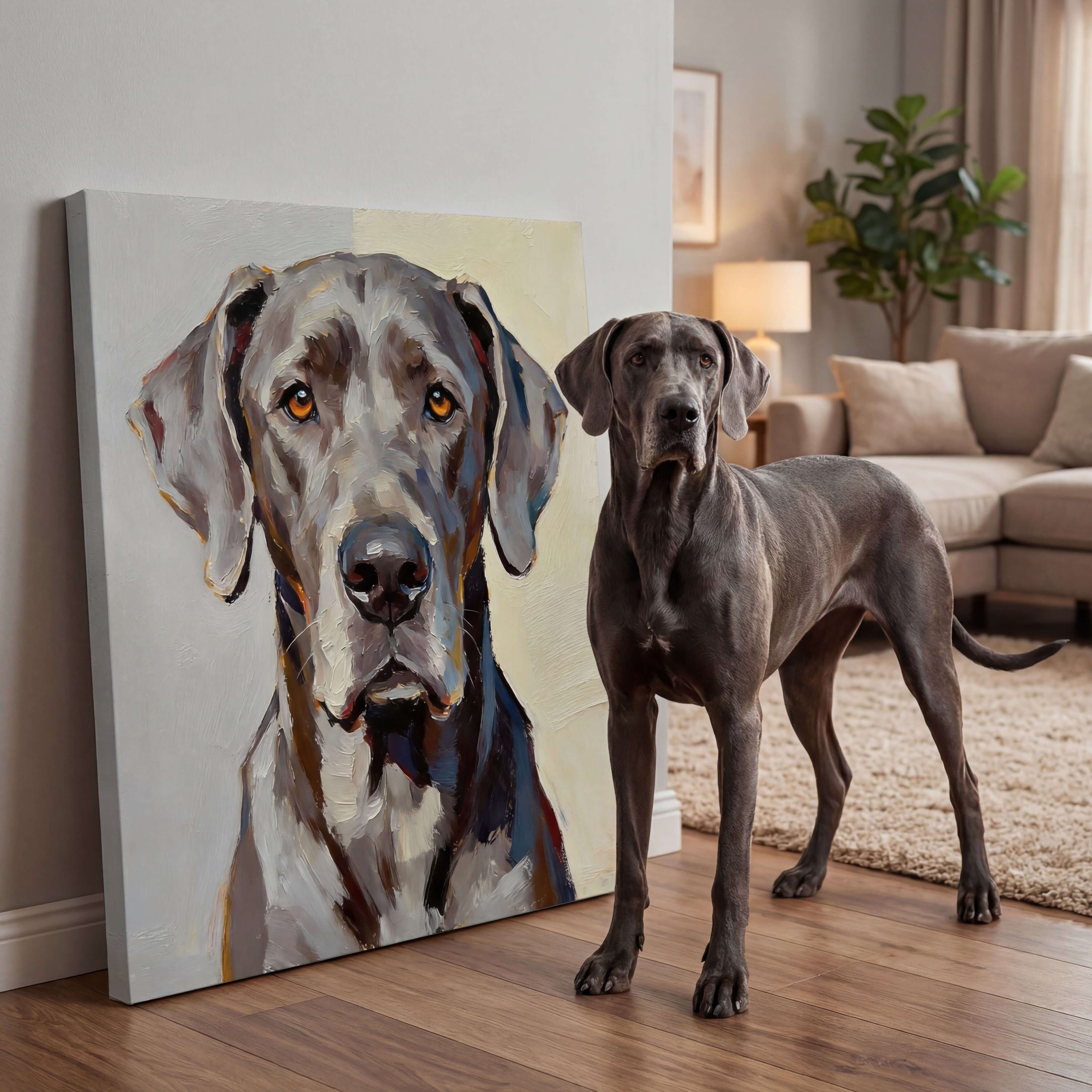Unwrap your pet portrait, enjoy the moment, and display it at home. Digital download or gallery-quality framed print.